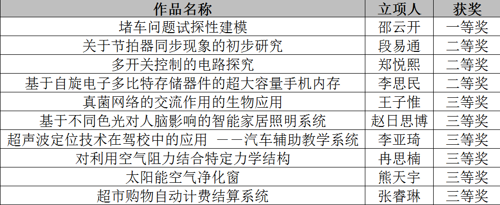 学术科技作品竞赛获奖名单