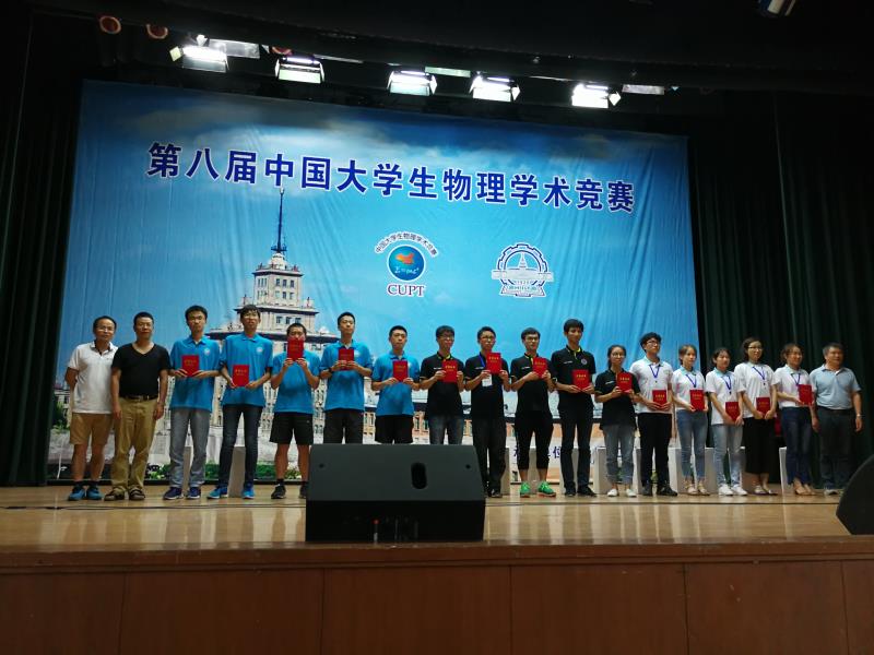 8月13-17日,第八届中国大学生物理学术竞赛(CUPT)在哈尔滨工业大学举办。本届比赛共有包括清华大学、北京大学、复旦大学、北京亚洲成人在线一二三四五六区、南开大学、上海交通大学等在内的73所高校组成的74支队伍参赛,26支队伍观摩,是该赛事8年来举办规模最大的一次。本届比赛中,由我校物理学院张国锋教授担任指导教师,黄安平教授和张玉洁副教授为裁判、张国锋教授和付思乔同学为领队,由马英猷、黄钰堃、马启涵、张翊庭和梁岩五位正式队员和若干观摩队员组成的代表队积极参与,在比赛中以全国排名第八的优异成绩,获得一等奖。我校2016年首次参加该项赛事获二等奖。