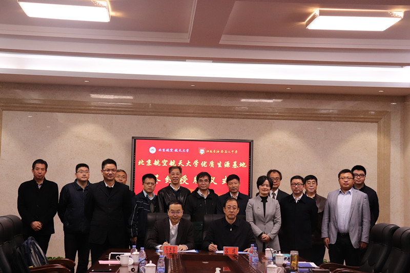 座谈会上,招就处马进喜处长、海安中学吕建校长分别代表北航与海安中学,签订了优质生源基地协议,将通过优质生源基地的建设,开展多领域的合作,通过组织教授进中学、中学生进北航等多项活动,把北航的优质资源加入到海安中学的学生培养活动中,以在中学阶段培养学生创新意识、人文情怀为依托,引导学生在某一领域积极进行探索,有效推进大学与中学的互动衔接,支持优质生源基地的发展。
