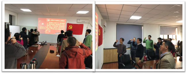 大会在全体党员合唱国际歌中开始,随后李伟同志介绍了自己的情况,宣读了入党志愿书,两位入党介绍人陈强教授,郭怀明教授也介绍了李伟同志在工作和生活中的情况,并表明了自己作为入党介绍人的意见。王文文书记和其他支部党员也对李伟同志提出了希望和中肯的建议,希望李伟同志在以后的学习生活中戒骄戒躁,不仅要在组织上入党,更重要的是在思想上入党,之后大家进行了充分讨论。经党支部无记名投票,全票通过同意吸收李伟同志为中共预备党员。支部党员在邓胜华同志的带领下,庄严宣誓,重温入党誓词。