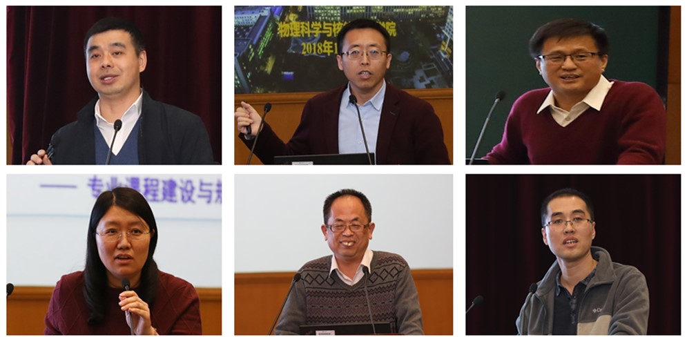 物理学院本科教学副院长黄安平教授做了题为“强化物理教学建设,提升物理育人能力”的主题报告。报告分为2018教学回顾与2019教学设想两个方面,展示了学院2018年教学工作的诸多亮点,并提出了2019年的工作设想。报告的最后,黄安平副院长号召各位老师要像爱护自己眼睛一样爱护北航的声誉,像对待自己孩子一样对待北航的学生。研究生教学副院长耿立升教授做了题为“2019版学术型研究生培养方案及核心课程建设汇报”的主题报告。报告以新版培养方案的修订为切入点,回顾了2018年学院在研究生培养方面的工作。结合国家、学校、学院的发展形势,对标国内一流,学院制定了2019版研究生培养方案。新版培养方案更加侧重于培养高水平物理学人才,助力学院早日建成一流理科。随后,围绕“强化课程建设,提升教学质量”的主题,物理学院王金良、钱建强、金硕、董国波四位老师分别作了“物理大类公共基础课程资源建设的‘昨天’、‘今天’和‘明天’”、“‘近代物理实验’课程建设思考——助力一流物理学科建设”、“物理专业课程的‘望闻问切’—— 专业课程建设与规划思考”及“基于自主创新驱动、科技能力导向的物理实验教学供给侧改革构想”四个专题报告,阐述了四类课程建设的历史、现状和未来规划。