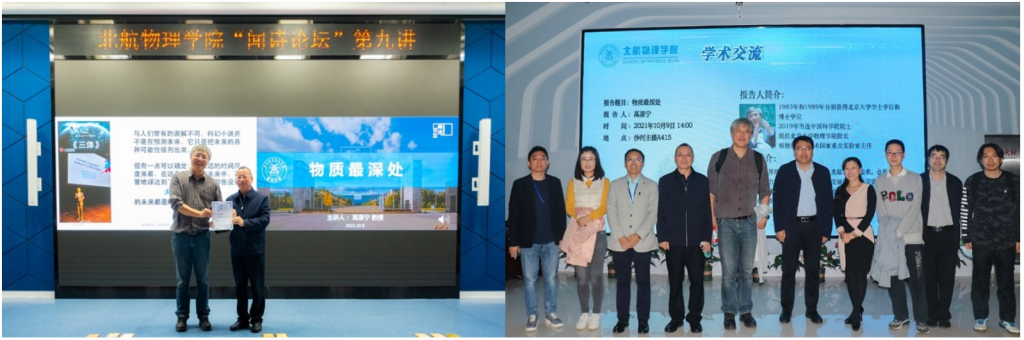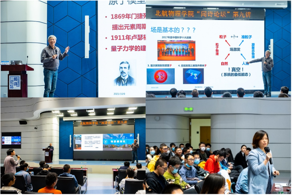 首先,北航物理学院吕广宏院长发表了热情洋溢的致辞,并隆重介绍主讲老师高原宁院士。高原宁院士1983年毕业于北京大学物理系,获理学学士学位;1989年毕业于北京大学物理系,获理学博士学位,而后主要从事高能对撞机上的粒子物理实验研究。高原宁院士团队在2017年首次观测到双粲重子,入选“2017年度中国科学十大进展”;2015年LHCb组首次观测到五夸克粒子,被科学杂志,美国物理学会“物理”网站Physics - Highlights of the Year (aps.org)等评为年度物理学重要进展。