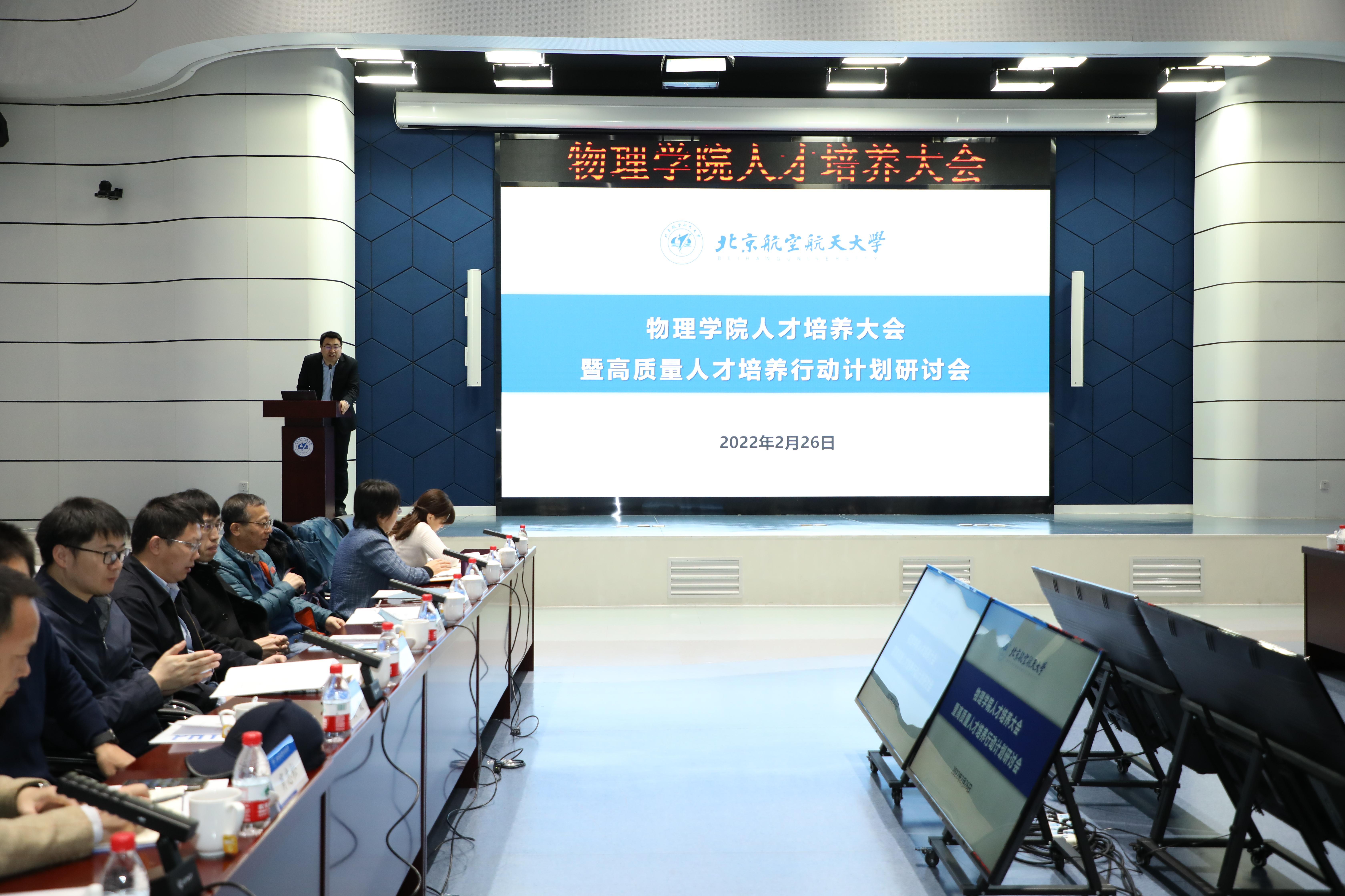 2月26日,物理学院人才培养大会暨高质量人才培养行动计划研讨会在沙河校区A415召开。吕卫锋副校长,教务处、研究生院、学生工作部、研究生工作部、北航学院、未来空天技术学院、前沿科学技术创新研究院、航空发动机研究院负责人,物理学院全体教职工、部分学生代表参加会议。会议由物理学院党委书记李广超、副院长耿立升主持。