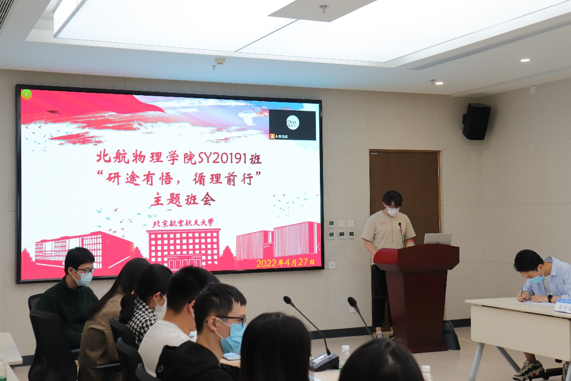 4月27日下午,物理学院SY20191班举行“研途有悟,循理前行”主题班会,黄海军副校长,物理学院院长吕广宏,副书记吕经纬,辅导员李思瑶、姜泽超以及SY20191班同学参加了本次班会。班会由团支书吴艳松同学主持。