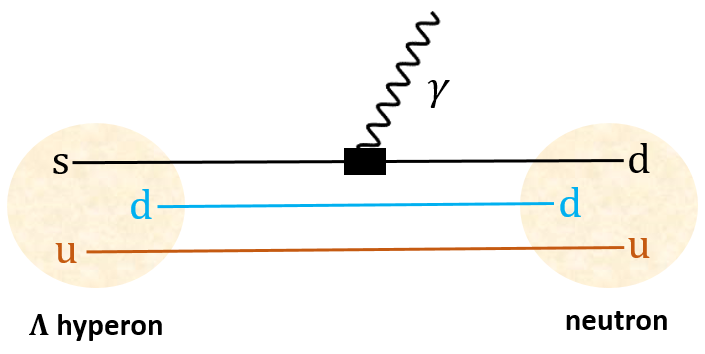 图2:超子弱辐射衰变Λ→nγ的费曼图,其夸克层次对应s→d γ过程。