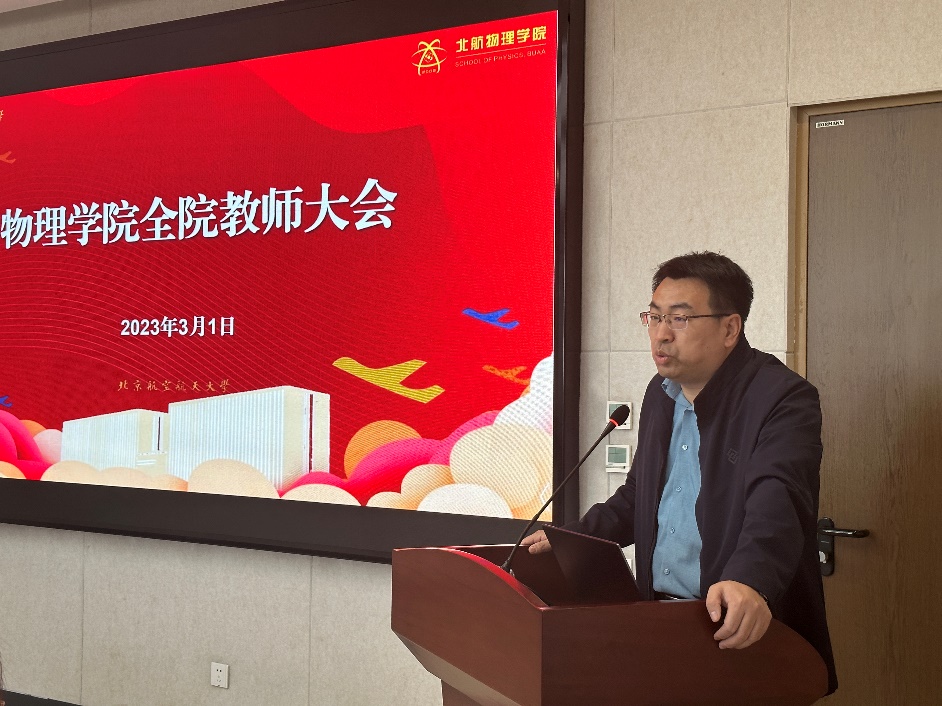 3月1日下午,物理学院在沙河校区C511会议室召开全院教师大会,传达学校2023年度工作会精神、全面从严治党暨警示教育大会精神,结合贯彻落实学校各项工作要求,对学院2023年重点工作进行了动员部署。学院全体教师参加了本次会议,会议由学院党委书记李广超主持。