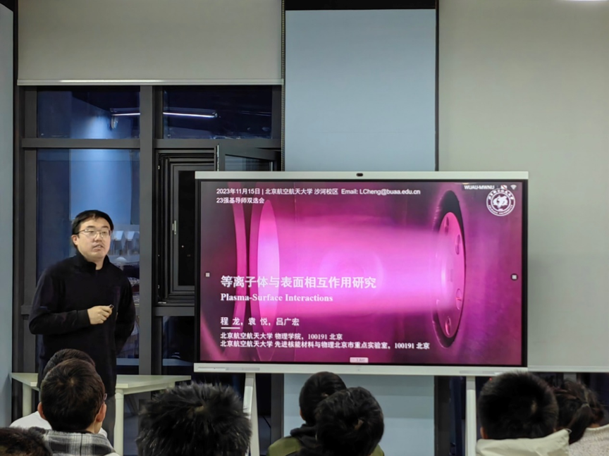 2023年11月15日,物理学院开展“2023级强基计划 导师-学生双选会”。吕广宏院长等近30位学院老师、班主任钟晓岚老师、辅导员陈文卓及2023级强基计划全体学生齐聚沙河主楼Xspace,共同交流探讨,为23级强基生将来的科研道路探索方向。