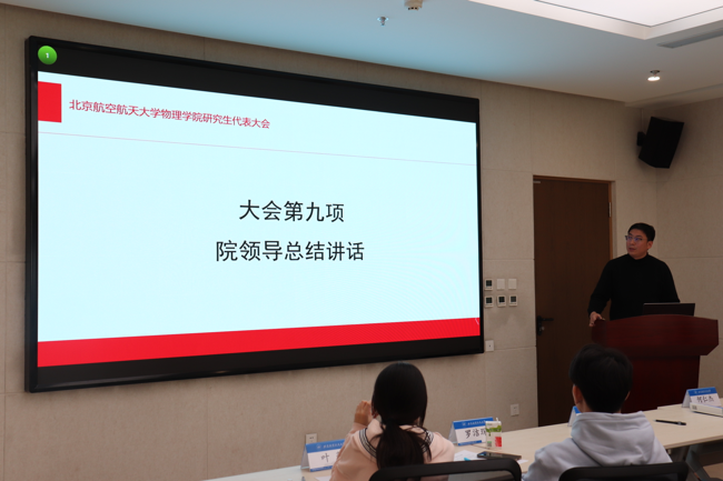 2023年12月6日上午,北航物理学院第三次研究生代表大会在沙河校区主楼C511会议室举行。学院团委书记宋树洋老师、北航校研究生会主席团成员何仁杰、物理学院2023级硕博辅导员胡依凡、物理学院研究生会主席团成员罗洁琛、物理学院研究生会叶萍以及物理学院研究生代表出席本次会议,会议由物理学院研究生会刘雷轶男主持。