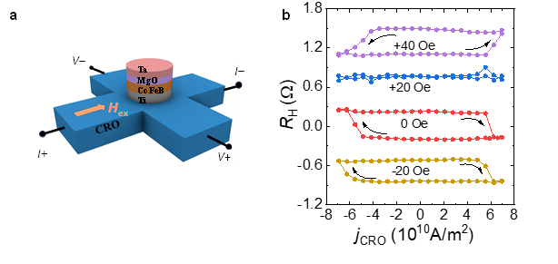 图3 CaRuO3中的自旋流在无外磁场下驱动垂直磁矩翻转