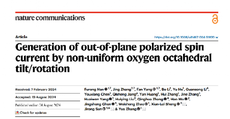 Furong Han, Jing Zhang, Fan Yang, Bo Li, Yu He, Guansong Li, Youxiang Chen, Qisheng Jiang, Yan Huang, Hui Zhang, Jine Zhang, Huaiwen Yang, Huiying Liu, Qinghua Zhang, Hao Wu, Jingsheng Chen, Weisheng Zhao, Xian-Lei Sheng, Jirong Sun, Yue Zhang. Generation of out-of-plane polarized spin current by non-uniform oxygen octahedral tilt/rotation. Nat. Commun. 15, 7299 (2024).