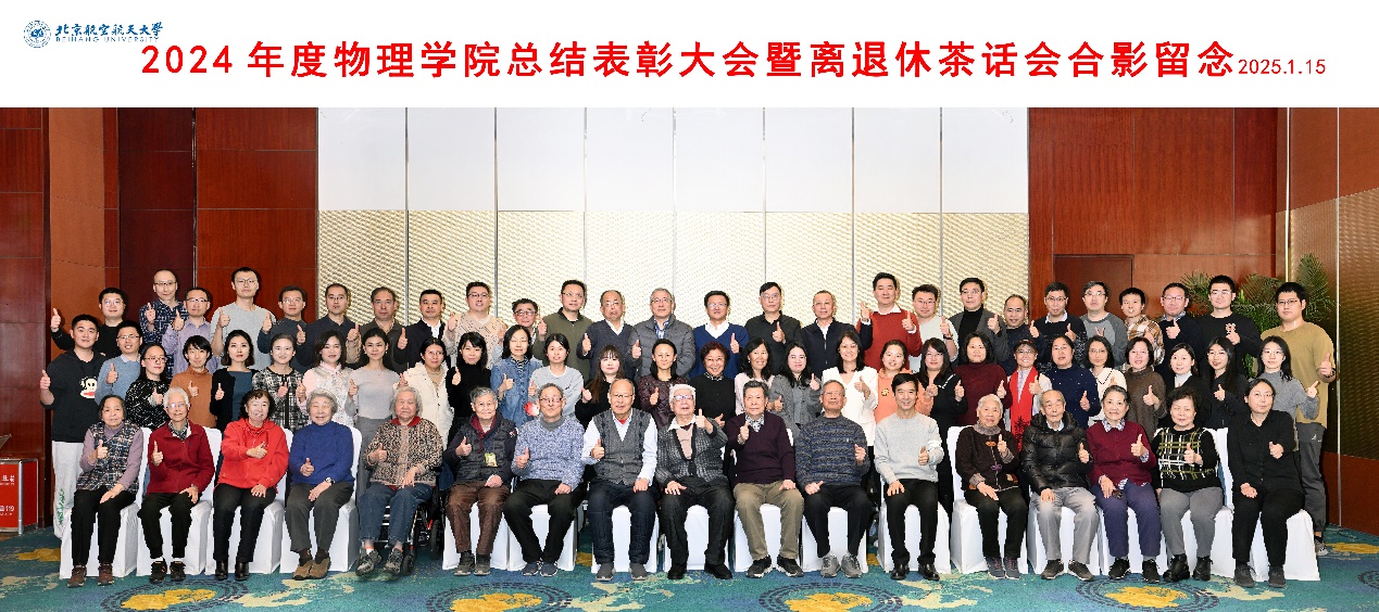 北航新闻网1月16日电(通讯员 曲韵)岁序更替,华章日新。2025年1月15日,物理学院2024年度总结表彰大会暨离退休茶话会圆满召开。学院教师和退休教师欢聚一堂,共同回顾2024年度学院的丰硕成果,对工作表现突出的先进团队和个人进行表彰,致敬为学院作出贡献的退休教师。会议由学院党委书记王菲,副院长黄安平、杜轶,退休教师代表邓胜华共同主持。