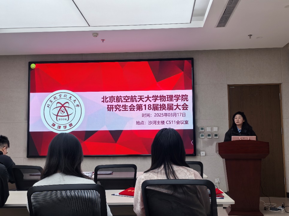 2025年3月13日上午10时,北航物理学院第四次研究生代表大会在沙河校区主楼C511会议室召开。出席会议的有北航研究生会主席团成员马钰涵、物理学院2022级硕博辅导员谢雨希、物理学院研究生会现任主席团成员杨乔锋、王孝龙以及众多研究生代表。会议由物理学院研究生会王振宇主持。