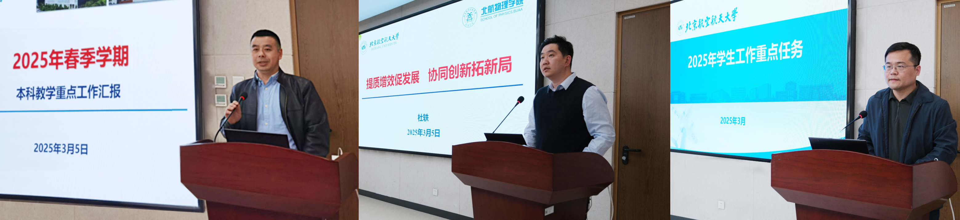 北航新闻网3月6日电(通讯员 蔡红艳 曲韵)3月5日,物理学院召开2025年全院大会、全面从严治党工作会暨警示教育大会,传达学校2025年度工作会精神、学校2025年全面从严治党工作会精神,部署学院2025年重点工作,开展师德师风教育。会议由物理学院党委书记王菲主持,物理学院全体教职工参加。